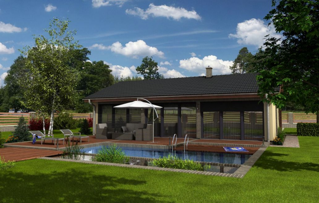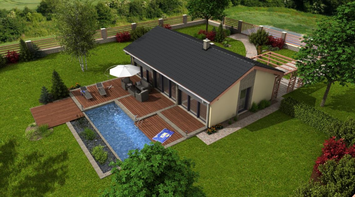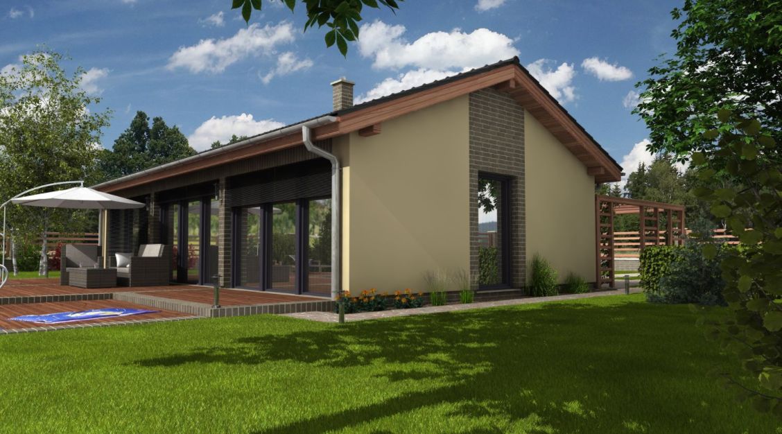 Axor je kompaktní přízemní bungalov, který však plně uspokojí nároky na bydlení tříčlenné rodiny. Jeho moderní vzhled je podtržen prosklenou fasádou, jež zajišťuje optické propojení zahrady s interiérovými obytnými prostory. Spojení obývacího pokoje, jídelny a kuchyně zaručuje společné soužití a interakci celé rodiny. Dům je vhodný i pro menší stavební pozemky. K objektu je možné ze strany přistavět garáž. Pro splnění legislativních požadavků na energetickou náročnost budovy je v projektu navržen rekuperační výměník, využívající energii z teplé odpadní vody.