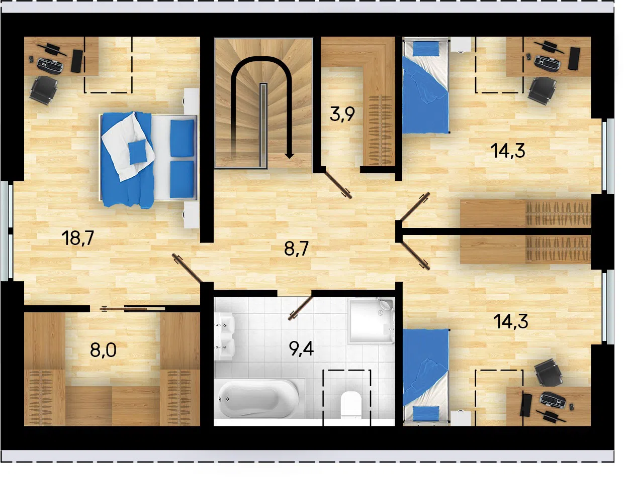 | Užitná plocha podkroví | 77,3 m² |